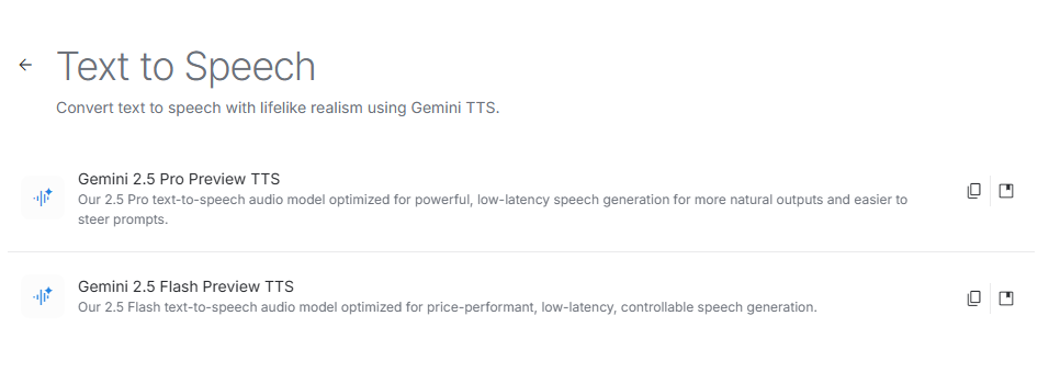 Text to Speechを選ぶと、使用するモデルを選ぶ画面が表示されます。基本的には、次のどちらかから選びます。