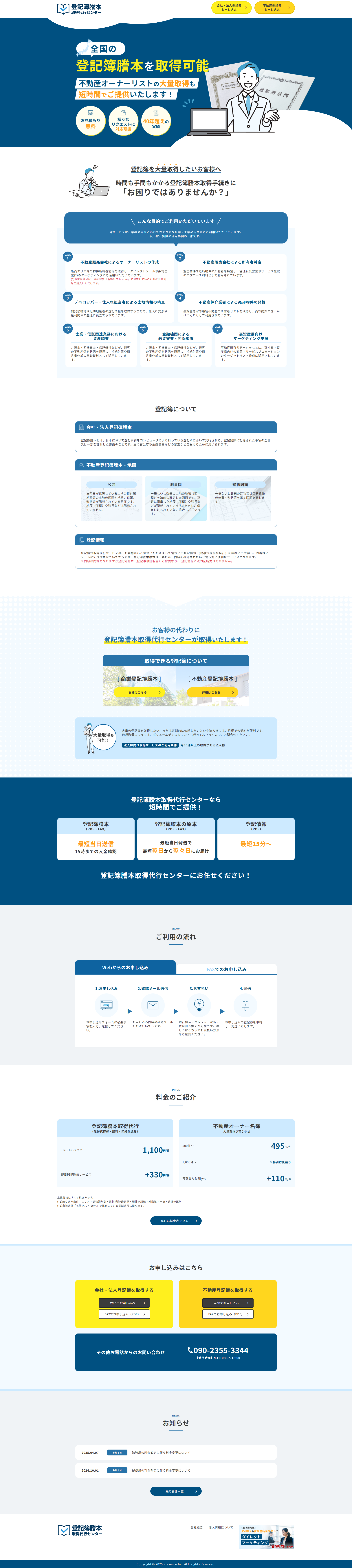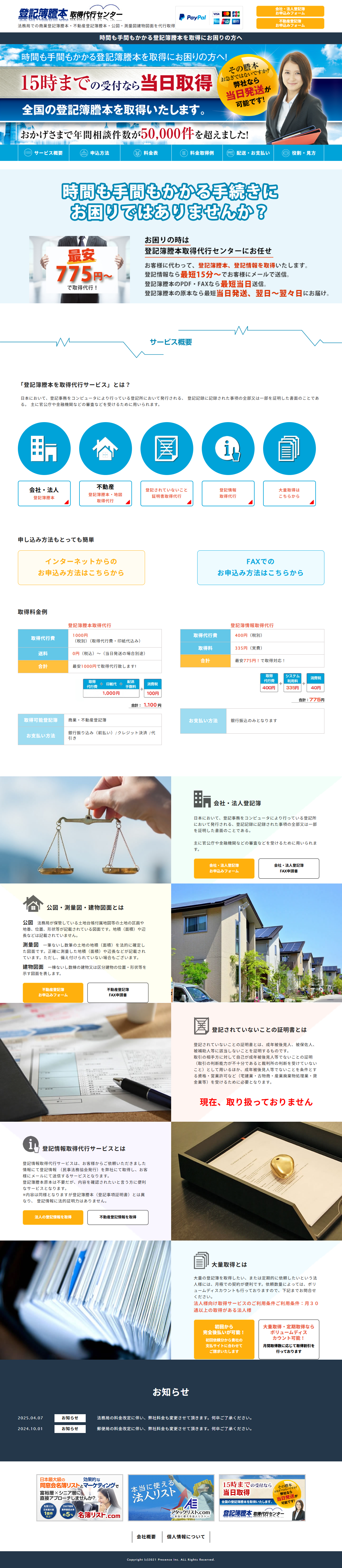 登記簿謄本の取得を代行するサービスサイトとして、信頼性とわかりやすさが特に求められるなか、デザインの古さ・視認性の低さを理由にリニューアルのご相談をいただきました。